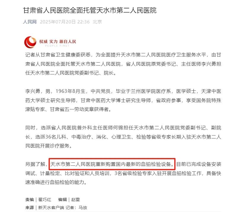 根據(jù)官方報(bào)道,昨日天水市第二人民醫(yī)院在省委省政府主導(dǎo)下完成實(shí)驗(yàn)室體系全面整改,正式引進(jìn)博暉創(chuàng)新最新一代血鉛檢測(cè)設(shè)備。